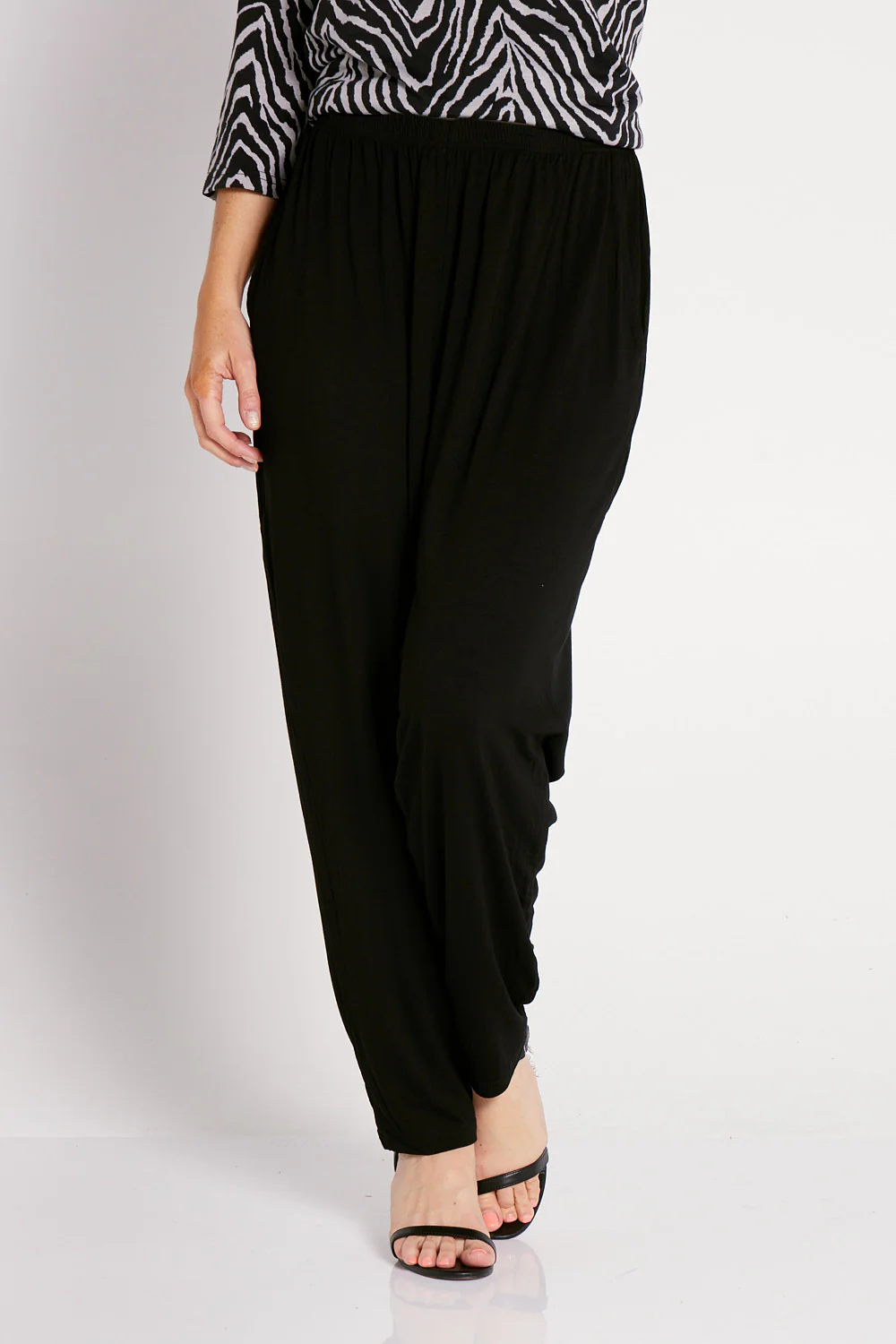 Cut with a relaxed, taper leg, the soft, smooth stretch jersey falls in loose folds from the waist to the ankle. The elasticated pull on waist and pockets add to the comfort and practicality, while the clean black colour way makes it possibly to style these for both smart and casual outfits.