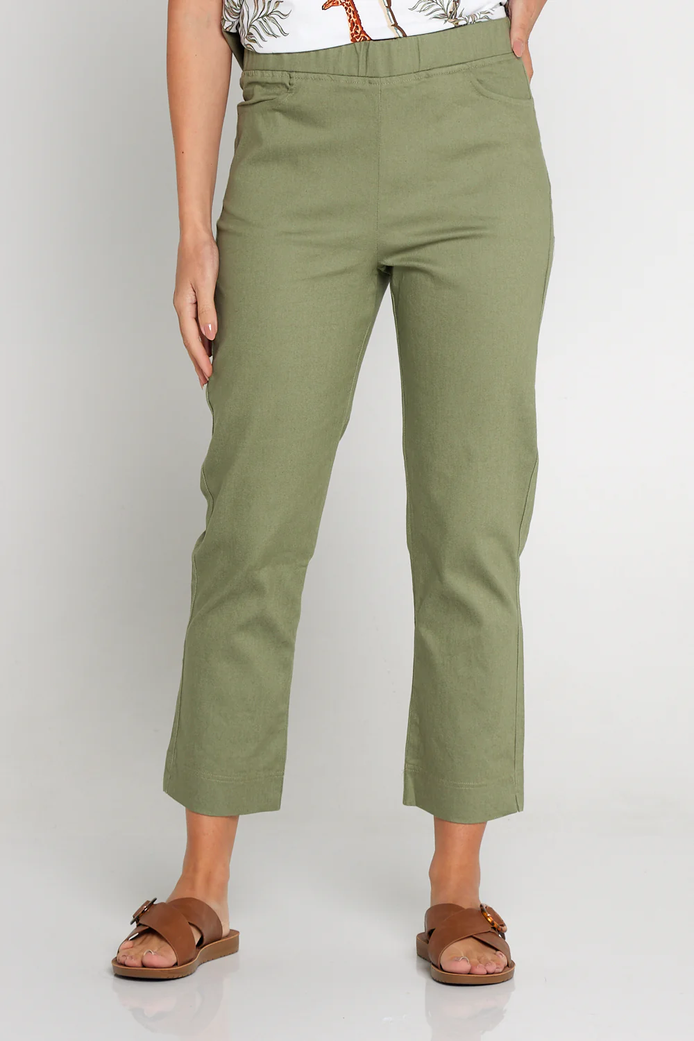 Kayla Pull On 7/8 Stretch Pants - Khaki