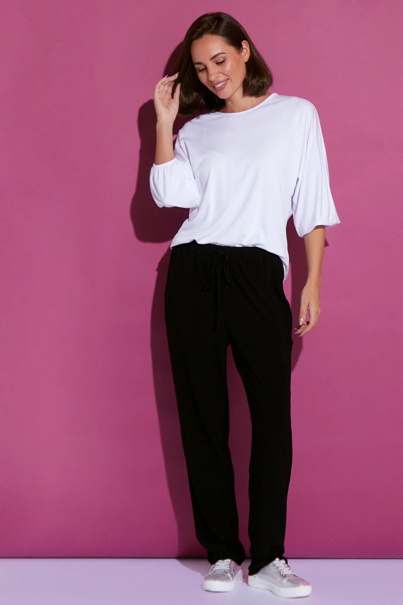 Introducing the ultimate in comfort and style: the Luxe Drawstring Jersey Pants in Black by Cordelia St. Crafted for both fashion and functionality, these pants feature an elasticated waistband with a functional drawstring, ensuring the perfect fit every time. With convenient in-seam pockets and a relaxed fit, they offer both practicality and effortless elegance. The tapered legs add a touch of sophistication, while the smooth, stretch jersey fabric ensures all-day comfort. Elevate your wardrobe with these versatile essentials, perfect for any occasion.