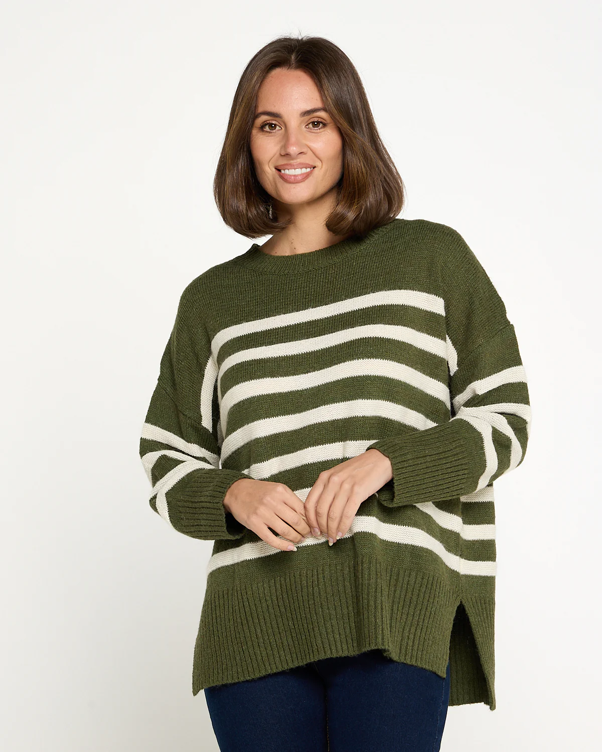 Rhianna Knit Jumper - Khaki/Cream Stripe