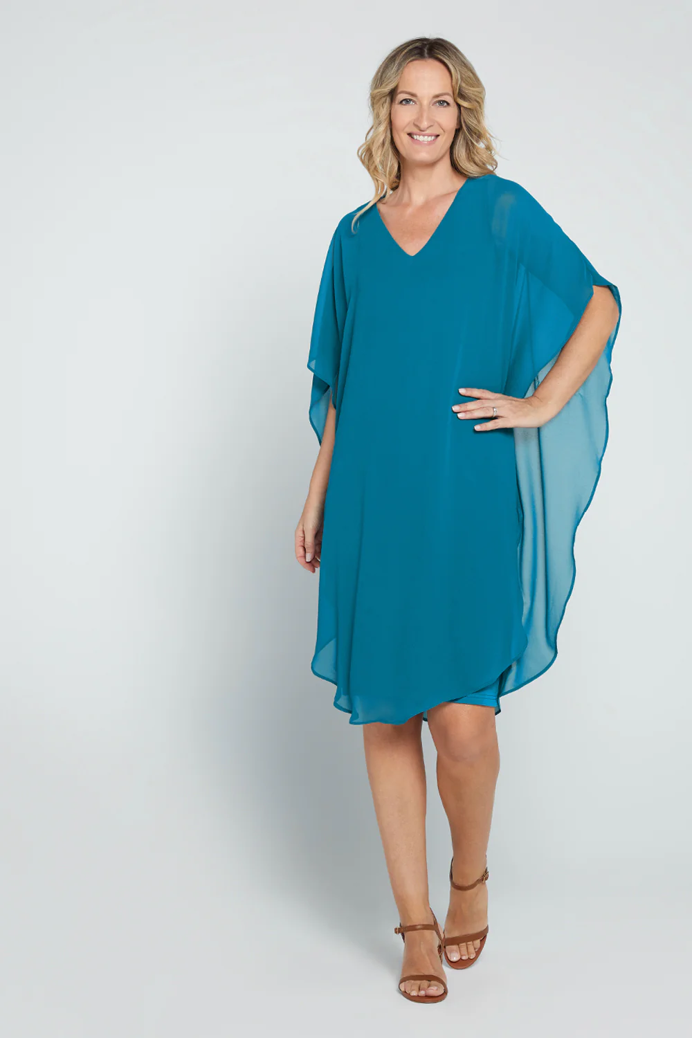 Oh so elegant for the evening, the Soirée Dress earns its keep by making you feel your most beautiful and confident for the special occasions when it matters the most. Simply slip into the stretch sheath design and let the chiffon overlay float down over your shoulders into elegant folds around the body. The teal blue is simply stunning on all complexions. You'll be standing out for all the right reasons.